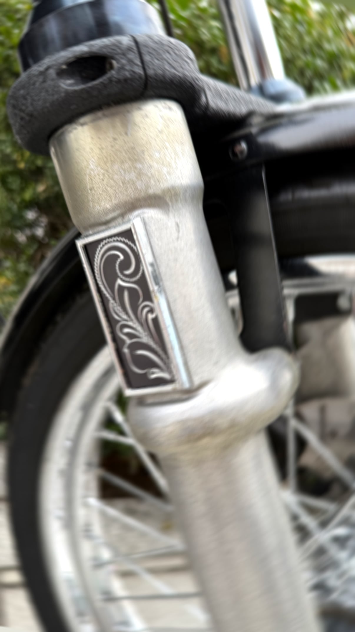 1973-87年の35mmフォーク、1980-1990年FXWG, FXTモデルのフォークのサイドに貼り付けてあるクロームベゼルのリフレクターの代わりに付けるアクセサリーパーツ。同じサイズのベゼルを持つリアフェンダーのリフレクターとの交換用にもおすすめです。