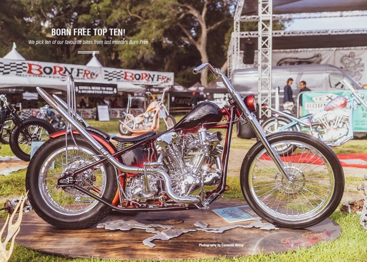 Dr Sprocket’s back with a memory of John Harman • Boise boys: Matt Whitlock and Todd Asin discuss their Born Free builds • Rattletrap! Beach racing from Australia (but it’s not racing!) • From England, North’s ‘47 Knuck chopper... daily rider? You bet. • From Japan, Ken5slow’s ‘51 Panhead chopper has a famous celluloid influence... • Perfect Knuck bob-job was a labour of love for Howard • They build ‘em tough in the midwest... Caleb’s Shovel is proof • Born Free 16 – our picks from last month’s show