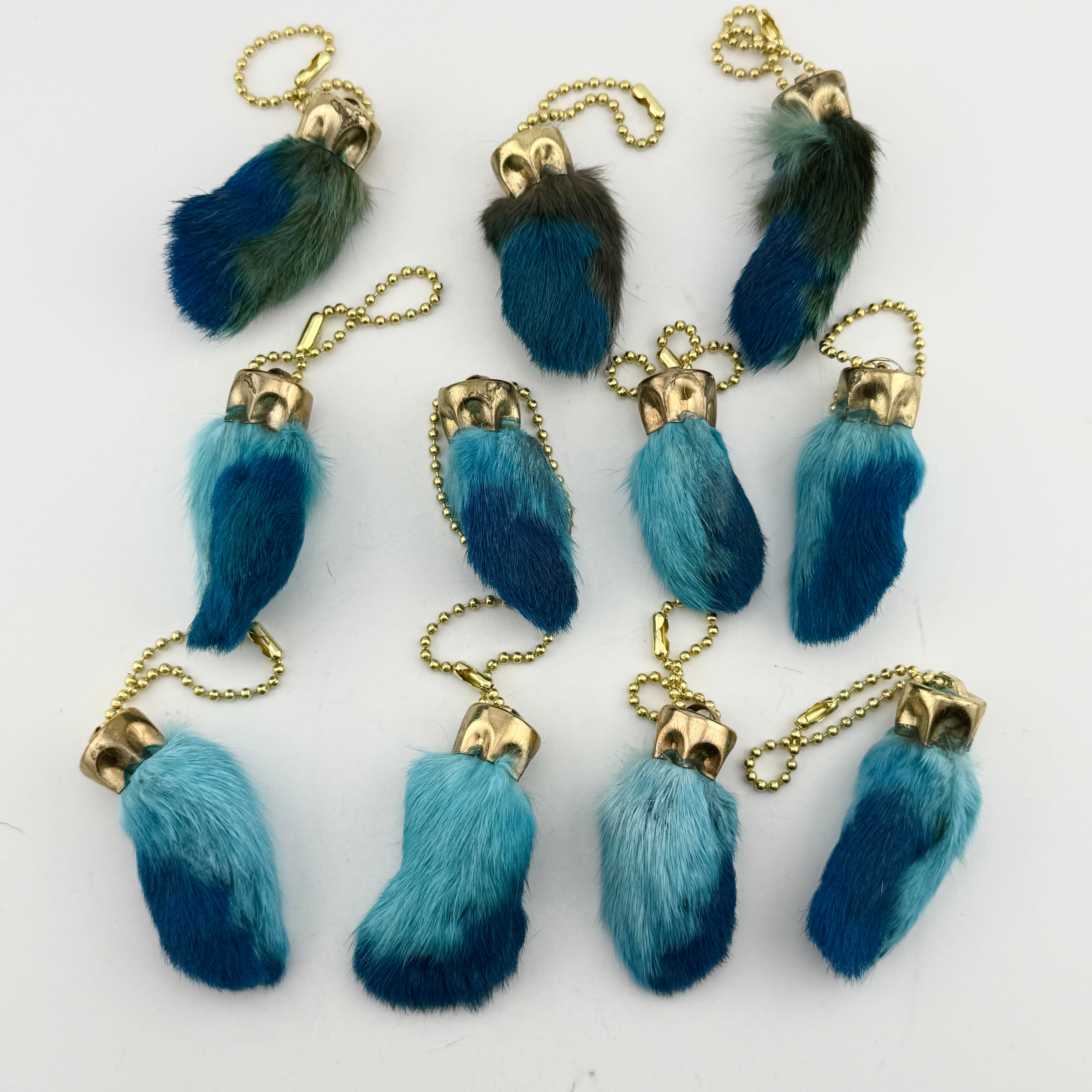LUCKY CHARM USA-Rabbits Foot key chain,Teal N.O.S.