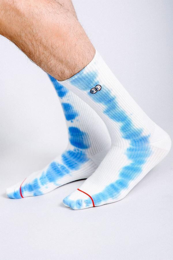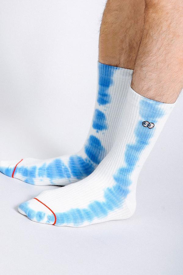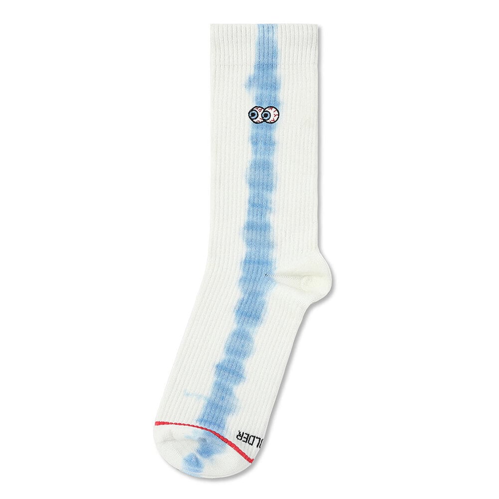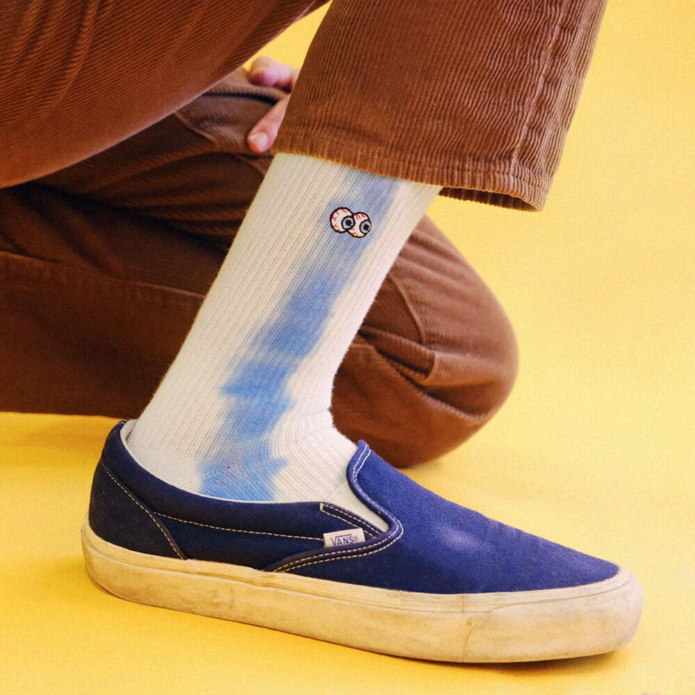 Beholder's Peeper crews feature embroidered eyes peeping out and hand tie dyed stripes on each side of the leg. These ribbed socks are made with premium combed cotton, a reinforced toe-heel and terry cushioning footbed.